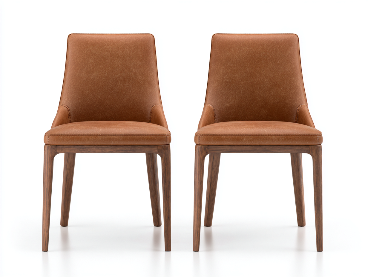 Sedia da pranzo-legno-pelle sintetica-57x56x80 cm-marrone cuoio-naturale-design moderno