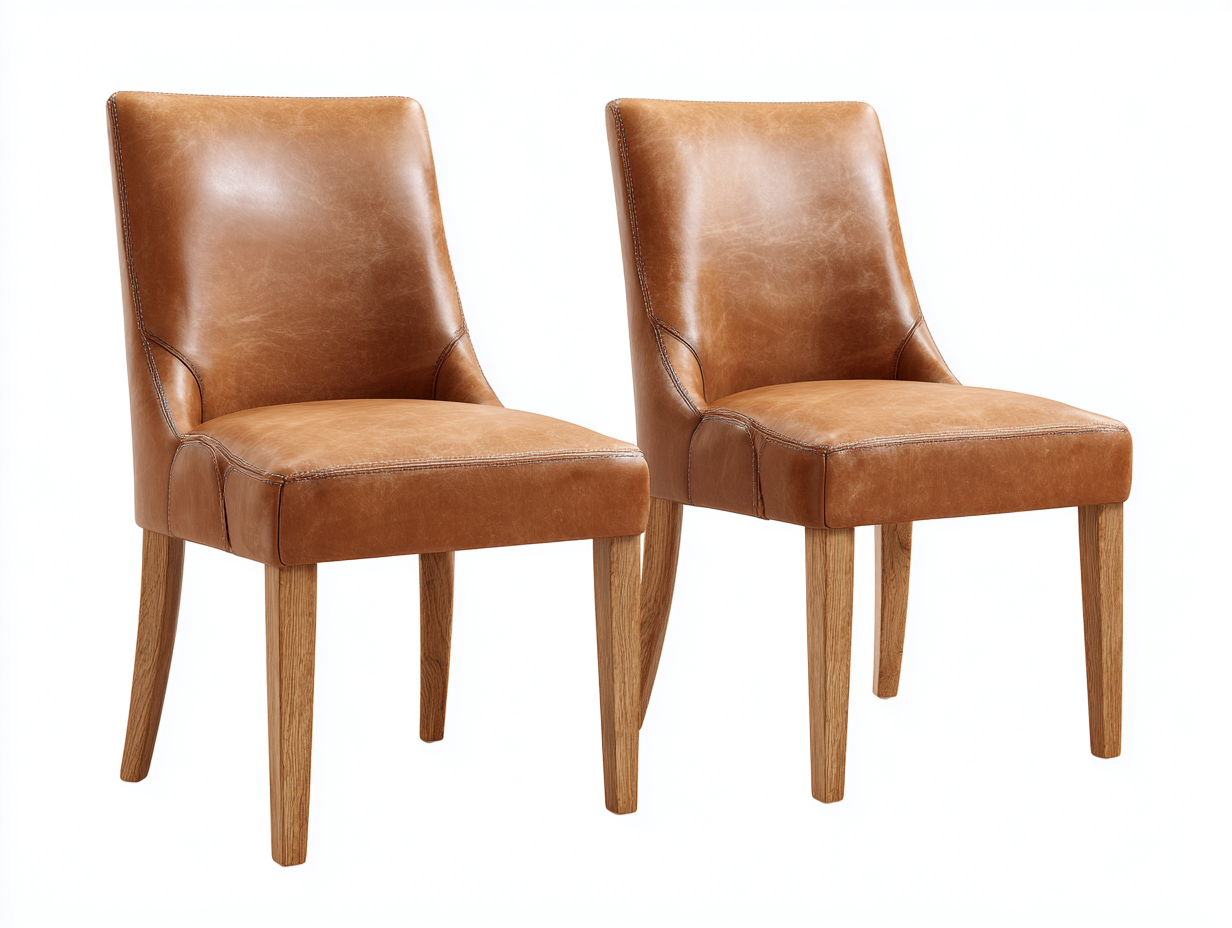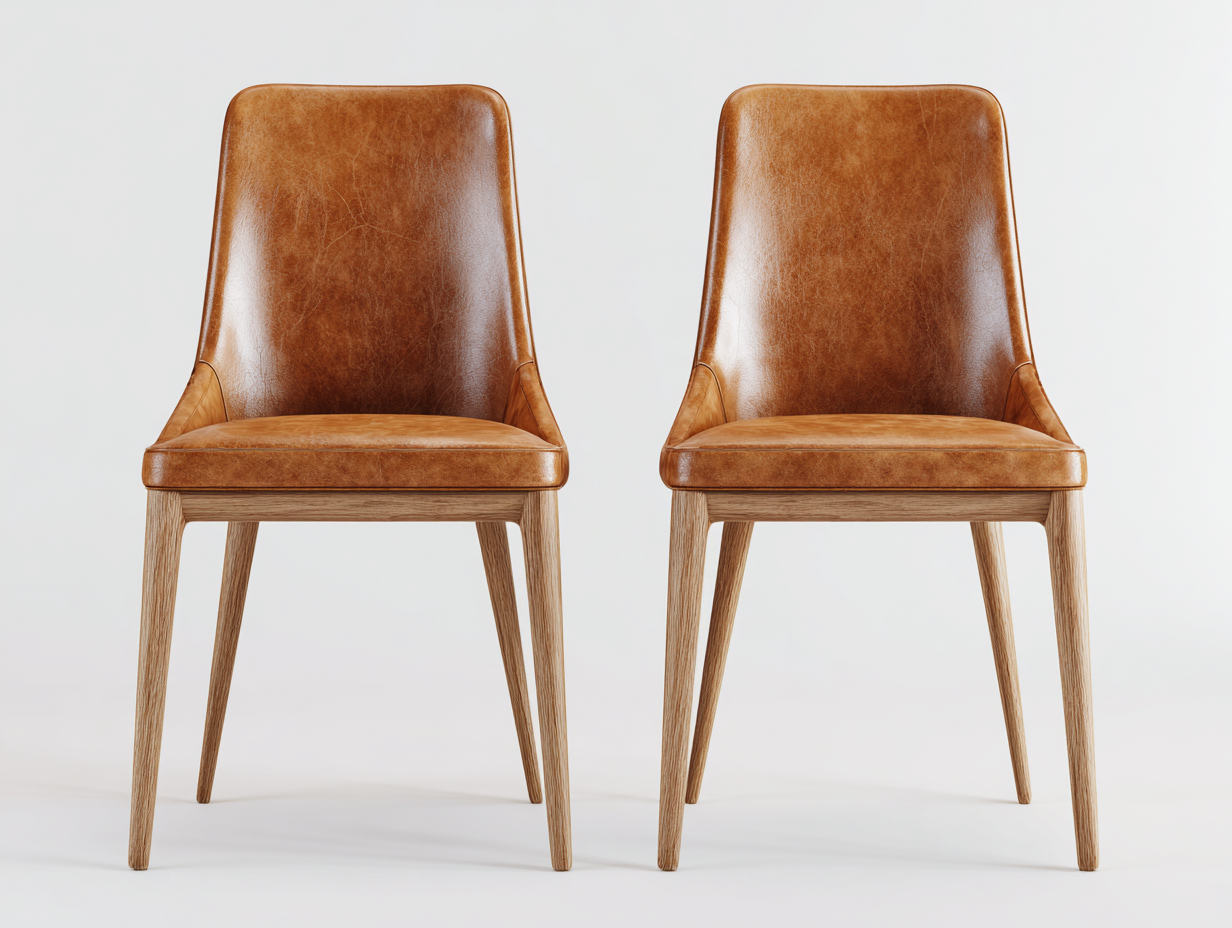 Sedia da pranzo-legno-pelle sintetica-52x54x82 cm-marrone cuoio-naturale-design moderno