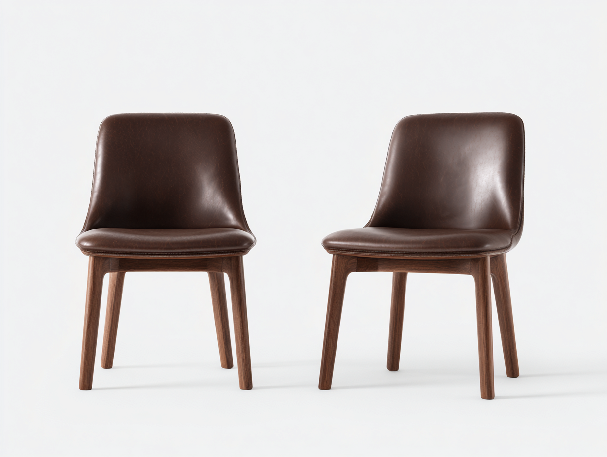 Sedia da pranzo-legno-pelle sintetica-51x54x81 cm-marrone scuro-naturale-design moderno